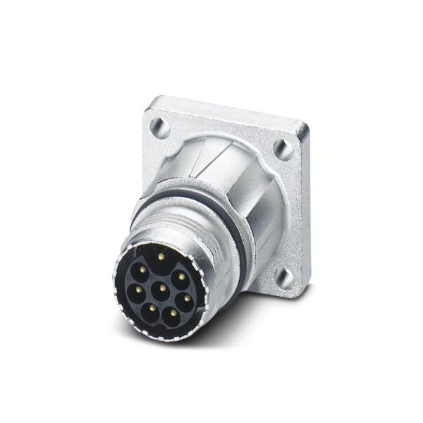 Device connector front mounting straight for standard and SPEEDCON interlock M17 number of positions: 7+PE type of contact: Pin Axial O-ring 4x 3.2 shielded: yes flange dimensions: 25.75 mm x 25.75 mm degree of protection: IP67 number of positions: 8 connect
