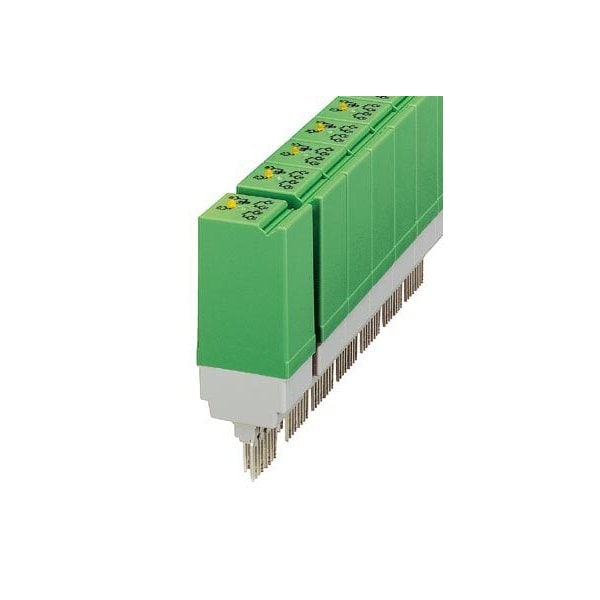 Relay connector fitted with miniature switching relay contacts AgNi: Medium to large loads 2 N/O contacts 24 V AC/DC input voltage with light indicator can be plugged into basic terminal blocks