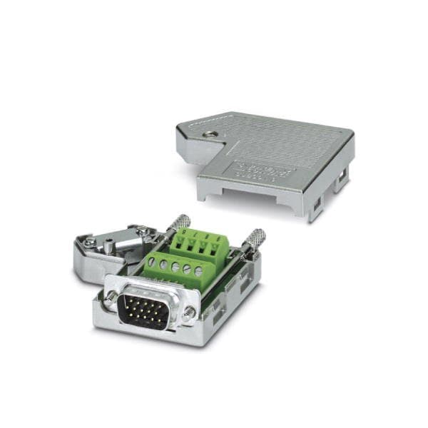 D-SUB connector 15-pos. HD High Density male one cable entry <35° universal type for all systems pin assignment: 1 2 3 6 7 8 10 13 14 to screw connection terminal block