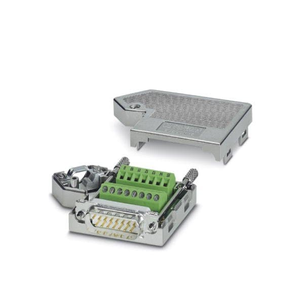 D-SUB connector 15-pos male connector one cable entry < 35° universal type for all systems pin assignment: 1 2 3 ... 14 15 to screw connection terminal block