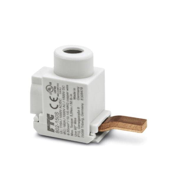 Feeder terminal adapter for TMC 71 circuit breakers single-phase bus bars. Rated for 1000 V AC/DC 115 A. Wire range 101/0 AWG. UL 508 Listed for connection to UL 1077 rated circuit breakers.