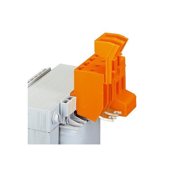 Transformer terminal block Connection method: Screw/Solder connection Length: 39.4 mm Width: 33.7 mm Height: 37.3 mm Color: orange Mounting type: DIN rail Coil snap-in device