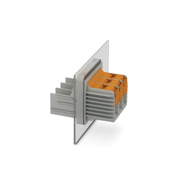Panel feed-through terminal block connection method: T-LOX knee lever connection Cable lug connection number of positions: 3 load current: 232 A connection direction of the conductor to plug-in direction: 0 ° width: 97 mm color: gray