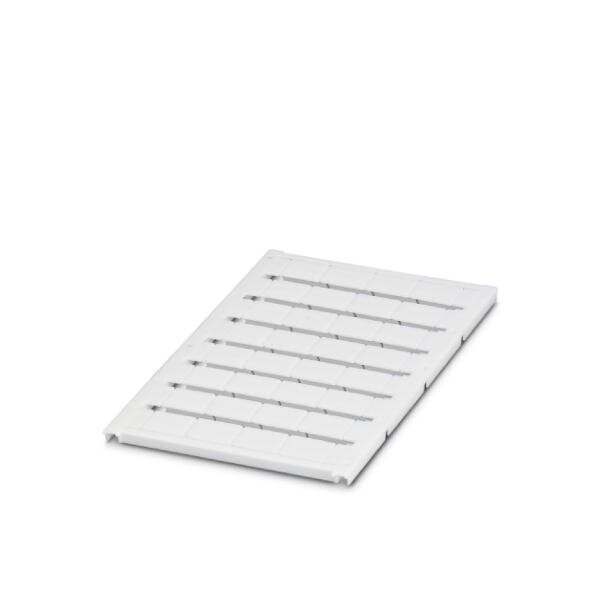 Marker for terminal blocks can be ordered: by sheet white labeled according to customer specifications mounting type: snap into tall marker groove for terminal block width: 16 mm lettering field size: 15.45 x 10.5 mm Number of individual labels: 32