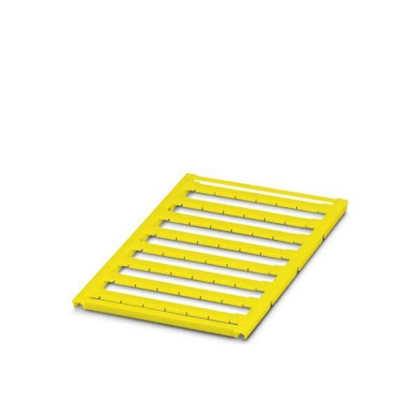 Marker for terminal blocks can be ordered: by sheet yellow labeled according to customer specifications mounting type: snap into flat marker groove for terminal block width: 10.2 mm lettering field size: 9.6 x 5.1 mm Number of individual labels: 48