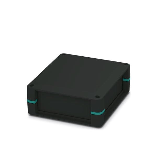 Complete housing for PCBs can be positioned flexibly; includes housing half shells side panels closed adhesive domes for PCB attachment screws for housing and PCB attachment; housing: black with turquoise blue corner inlays