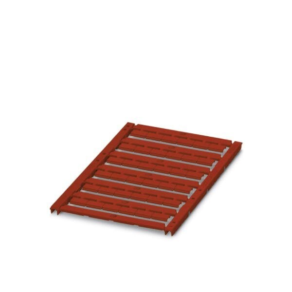 Marker for terminal blocks Sheet red unlabeled can be labeled with: TOPMARK NEO TOPMARK LASER BLUEMARK ID COLOR BLUEMARK ID BLUEMARK CLED THERMOMARK PRIME THERMOMARK CARD 2.0 THERMOMARK CARD mounting type: snap into flat marker groove for terminal block width: 10.2 mm