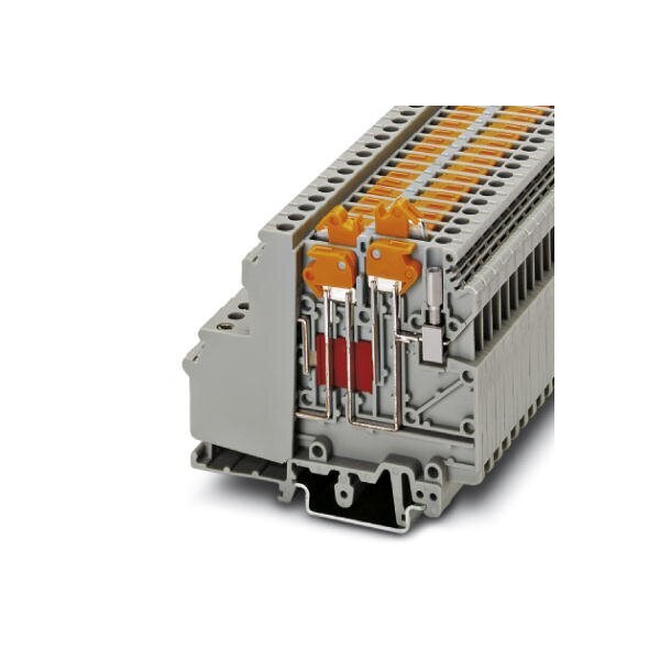 Knife disconnect terminal block With test socket screws for insertion of test plugs nom. voltage: 400 V nominal current: 8 A connection method: Screw connection cross section: 0.2 mm - 4 mm AWG: 24 - 12 length: 76.5 mm width: 6.2 mm color: gray mounting: NS 35/7 5 NS 35/15