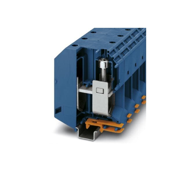High-current terminal block nom. voltage: 1000 V nominal current: 415 A connection method: Screw connection number of connections: 2 number of positions: 1 cross section: 70 mm - 240 mm AWG: 2/0 - 500 kcmil width: 36 mm height: 123.6 mm color: blue mounting type: NS 35/