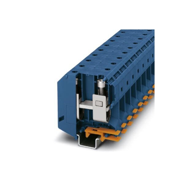 High-current terminal block Screws with hexagonal socket nom. voltage: 1000 V nominal current: 232 A connection method: Screw connection number of connections: 2 number of positions: 1 cross section: 25 mm - 95 mm AWG: 4 - 3/0 width: 25 mm height: 90 mm color: blue mou