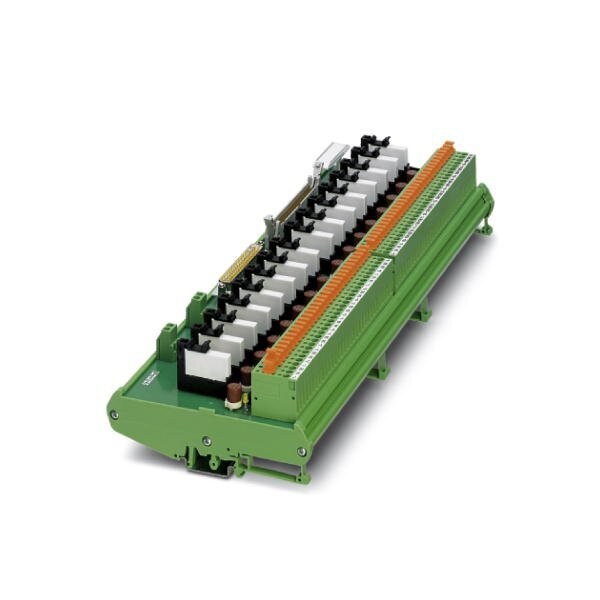 16-channel relay module for Honeywell C300 input modules. The module is controlled by the control system via 37-pos. D-SUB or 50-pos. FLK. A screw connection with knife disconnection is available in the field. Module width: 343 mm