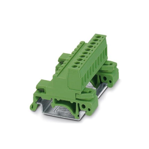 DIN rail connector nominal cross section: 2.5 mm color: green nominal current: 12 A rated voltage III/2: 320 V contact surface: Tin type of contact: Male connector Number of potentials: 10 Number of rows: 1 Number of positions per row: 10 number of connections: