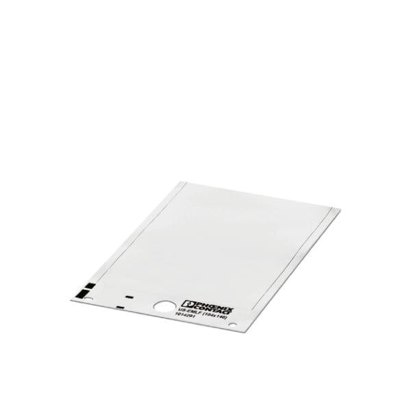 Plastic label Card white unlabeled can be labeled with: BLUEMARK ID COLOR BLUEMARK ID THERMOMARK PRIME THERMOMARK CARD 2.0 THERMOMARK CARD mounting type: adhesive lettering field size: 104 x 140 mm Number of individual labels: 1