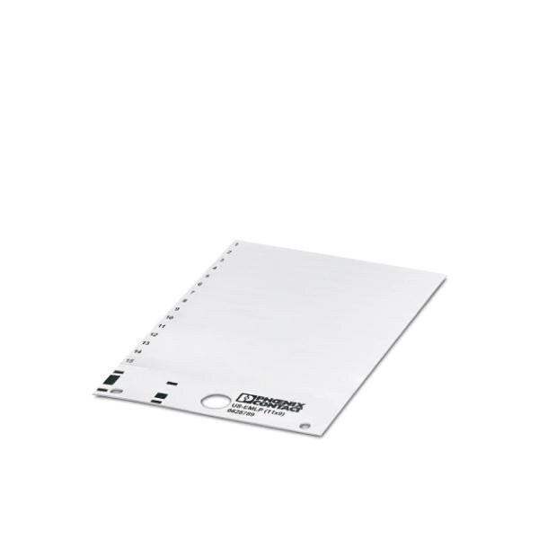 Plastic label Card white unlabeled can be labeled with: BLUEMARK ID COLOR BLUEMARK ID THERMOMARK PRIME THERMOMARK CARD 2.0 THERMOMARK CARD mounting type: adhesive lettering field size: 11 x 9 mm Number of individual labels: 135