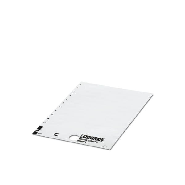 Marker for terminal blocks Card white unlabeled can be labeled with: BLUEMARK ID COLOR BLUEMARK ID THERMOMARK PRIME THERMOMARK CARD 2.0 THERMOMARK CARD mounting type: adhesive lettering field size: 104 x 10 mm Number of individual labels: 11