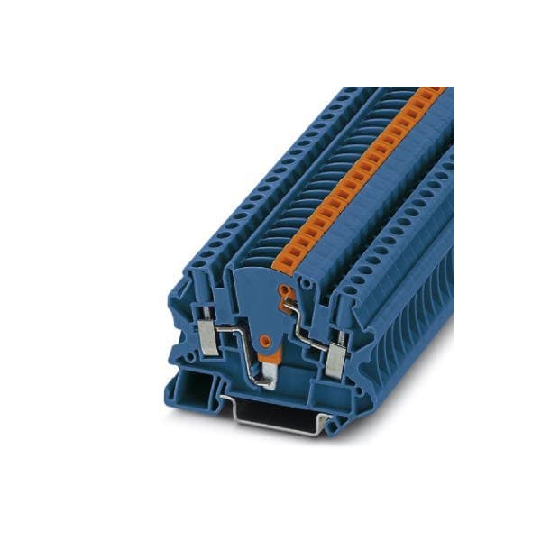 Test disconnect terminal block With test socket screws for insertion of test plugs nom. voltage: 500 V nominal current: 28 A connection method: Screw connection number of connections: 2 cross section: 0.14 mm - 6 mm AWG: 26 - 10 width: 6.2 mm color: blue mounting type: NS 3