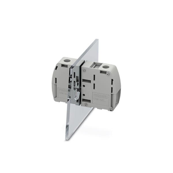 Panel feed-through terminal block connection method: Screw connection with tension sleeve Screw connection with tension sleeve number of positions: 1 load current: 150 A connection direction of the conductor to plug-in direction: 0 ° width: 18.8 mm color: gray