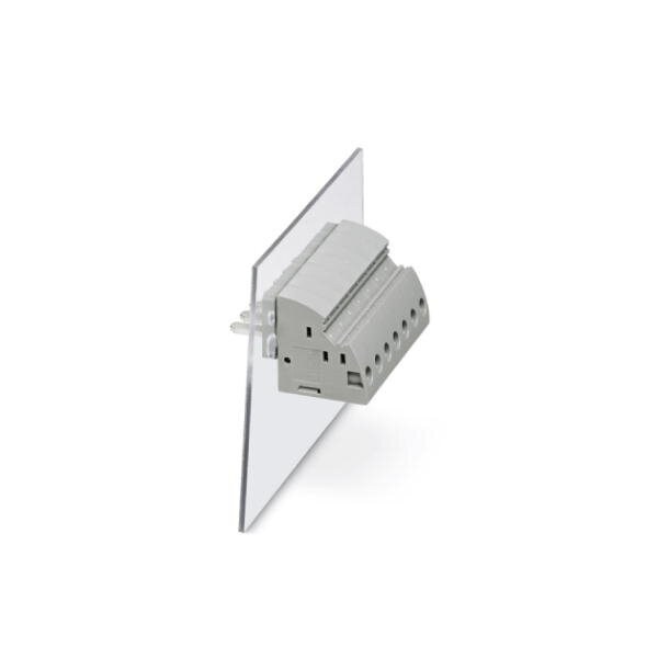Panel feed-through terminal block connection method: Screw connection with tension sleeve Solder connection number of positions: 1 load current: 57 A cross section: 0.5 mm - 16 mm connection direction of the conductor to plug-in direction: -90 ° width: 10.1 mm color: gray