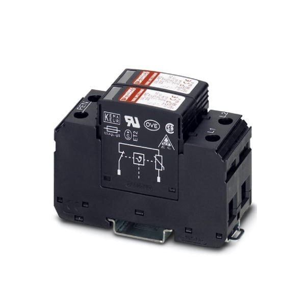 2-pos. rail-mountable surge arrester for 2+0 circuit thermal/dynamic monitoring and visual fault indicator.