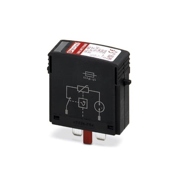 Surge protection plug type 2 with series connection consisting of varistor and gas-filled spark gap for VAL-MS base element thermal monitoring visual fault warning.