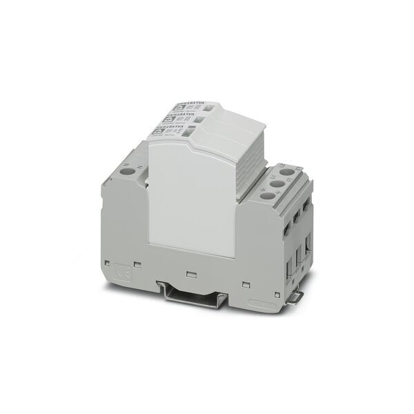 Plug-in surge arrester in accordance with Type 2/Class II for 2-phase power supply networks with separate N and PE 4-conductor system: L1 L2 N PE with remote indication contact.