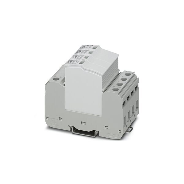 Plug-in surge arrester in accordance with Type 2/Class II for 3-phase power supply networks with separate N and PE 5-conductor system: L1 L2 L3 N PE with remote indication contact.