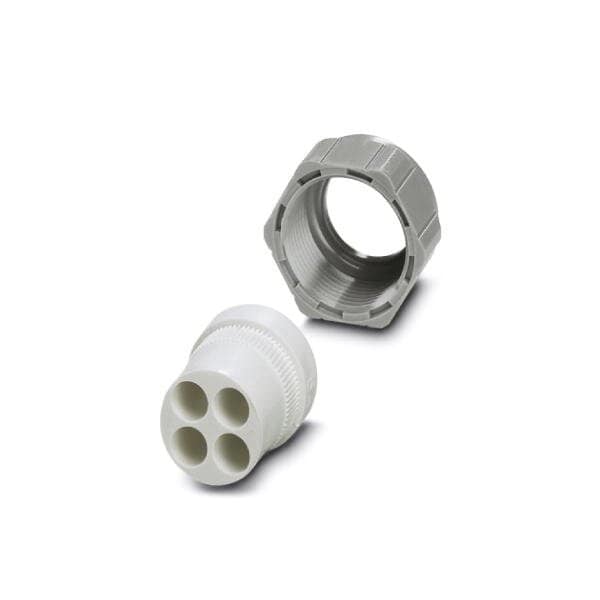 Half screw connection Pg21 made of plastic consisting of rubber seal with several holes 4 x 8 mm and one pressure screw for type 2 - 4 housings