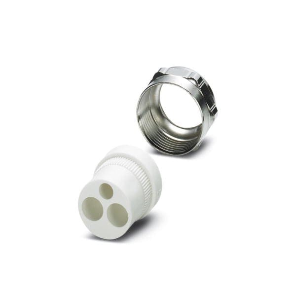 Multiple screw connection Pg21 made of metal consisting of rubber seal with several holes 1 x 6 mm/2 x 9 mm and a pressure screw for cable screw connection support VC-M-KV-PG21...