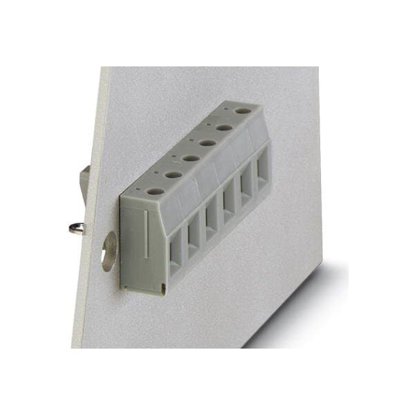 Panel feed-through terminal block connection method: Screw connection with tension sleeve Solder connection number of positions: 1 load current: 32 A cross section: 0.2 mm - 6 mm AWG 24 - 10 connection direction of the conductor to plug-in direction: 0 ° width: 10 mm color: gray