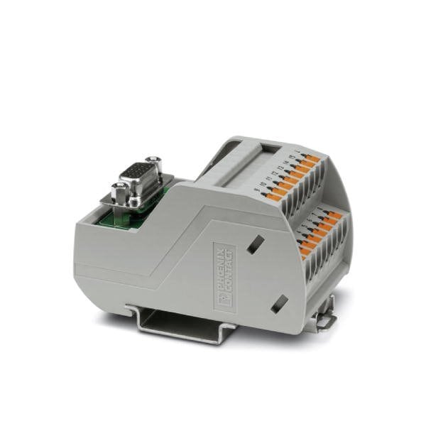 VARIOFACE module with push-in connection and high density D-SUB miniature socket strip for mounting on NS 35 no. of pos.: 15