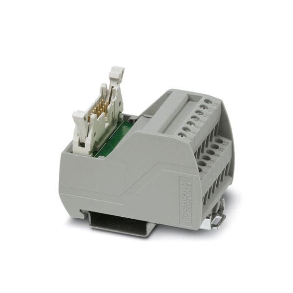 VARIOFACE module with screw connection and flat-ribbon cable connector for mounting on NS 35 rails with pin strip and short and long locking latches for socket strips 14-pos.