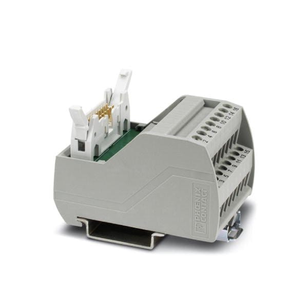 VARIOFACE module with screw connection and flat-ribbon cable connector for mounting on NS 35 rails with pin strip and short and long locking latches for socket strips 16-pos.