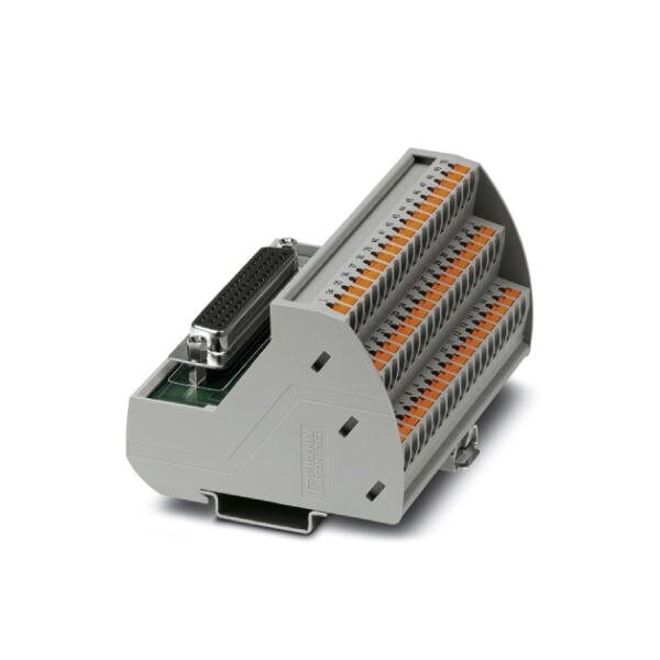 VARIOFACE module with push-in connections and D-SUB 50 socket connector for mounting on NS 35 rails