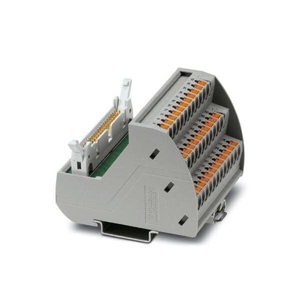 VARIOFACE module with push-in connection and flat-ribbon cable connector for mounting on NS 35 DIN rails with pin strip plus short and long locking latches for socket strips 34-pos.