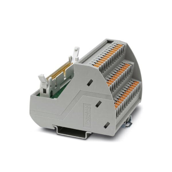 VARIOFACE module with push-in connection and flat-ribbon cable connector for mounting on NS 35 DIN rails with pin strip plus short and long locking latches for socket strips 40-pos.