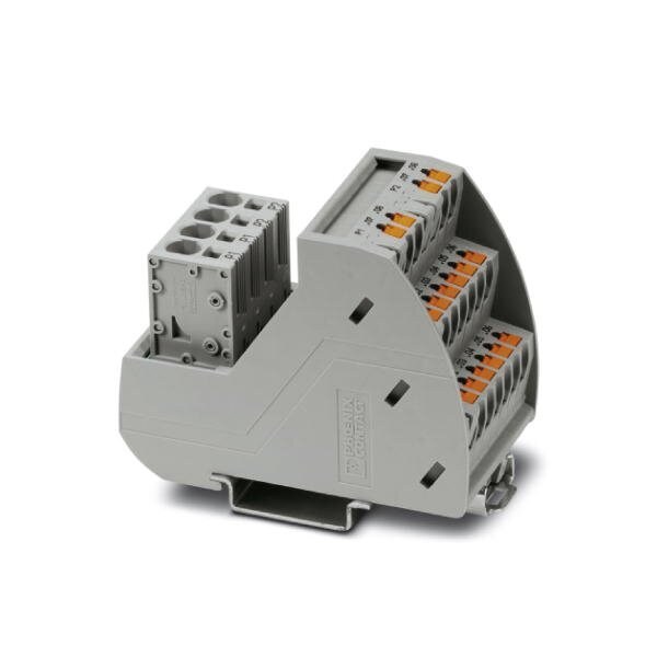 VARIOFACE module with two equipotential busbars P1 P2 for potential distribution for mounting on NS 35 rails. Module width: 41.9 mm