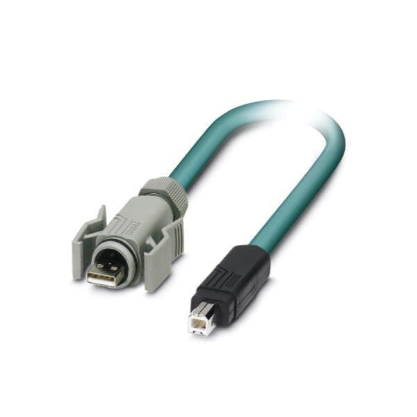 Assembled USB cable shielded color: RAL 5021 water blue PUR outer sheath USB type A/IP67 on USB type B/standard length: 5 m