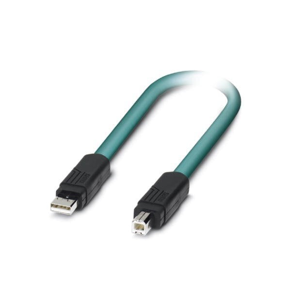 Assembled USB cable shielded color: RAL 5021 water blue PUR outer sheath USB type A/standard on USB type B/standard length: 5 m