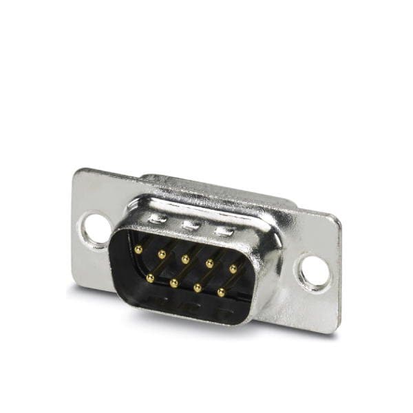 D-SUB contact insert shell size 1 with nine signal contacts type of contact pin with solder cup straight fixing with a 3 mm hole for panel mounting frame and sleeve housing VS-09-...
