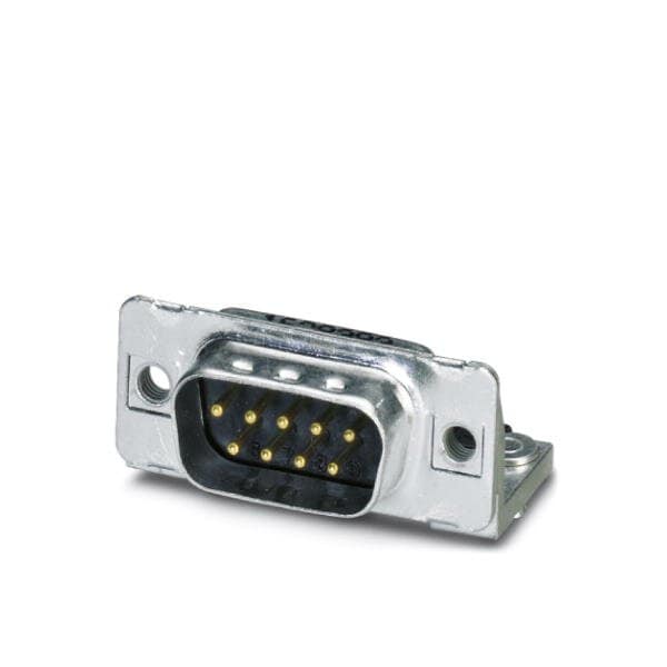 D-SUB contact insert shell size 1 with 9 signal contacts type of contact pin for PCB mounting angled fixing with M3 thread and solder pins for panel mounting frame VS-09-...