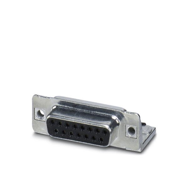 D-SUB contact insert shell size 2 with 15 signal contacts type of contact socket for PCB mounting angled fixing with M3 thread and solder pins for panel mounting frame VS-15-...