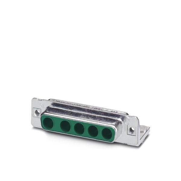 D-SUB contact support female type 25 5-pos. for angled power and coaxial contacts for soldering in with bracket with UNC thread for panel mounting side