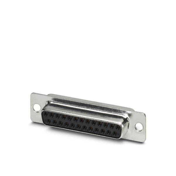D-SUB contact insert shell size 3 with 25 signal contacts type of contact socket with solder cup straight fixing with a 3 mm hole for panel mounting frame and sleeve housing VS-25-...