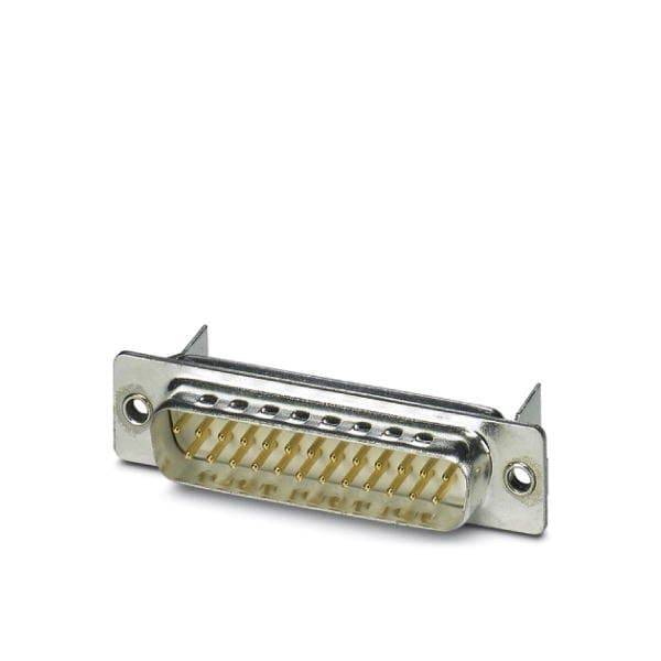 D-SUB contact insert shell size 3 with 25 signal contacts type of contact pin for PCB assembly angled fixing with a 2.5 mm hole and solder metal plate for panel mounting frame VS-25-...