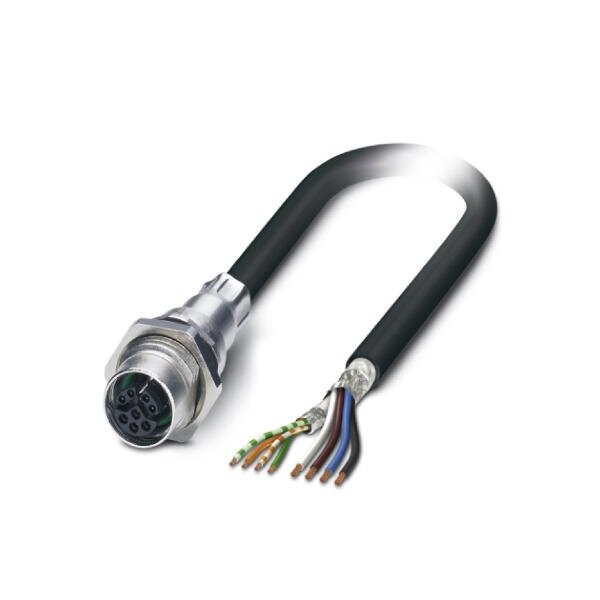 Hybrid flush-type socket Ethernet 8-pos. M12-SPEEDCON rear/screw mounting with M16 thread 360° shield connection with connected shielded hybrid cable