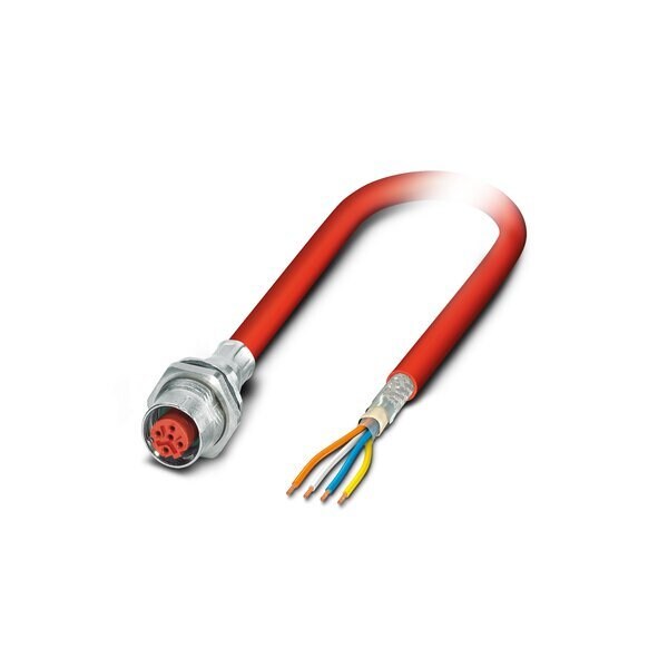 Assembled Sercos III cable shielded star quad AWG 22 stranded 7-wire RAL 3020 traffic red M12 flush-type socket rear mounting SPEEDCON 4-pos. on free conductor end length: 1 m