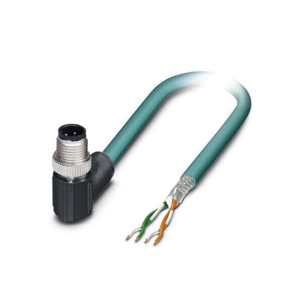 Network cable Ethernet CAT5 4-position PUR water blue RAL 5021 shielded Plug angled M12 Coding: D on free cable end Cable length: 5 m
