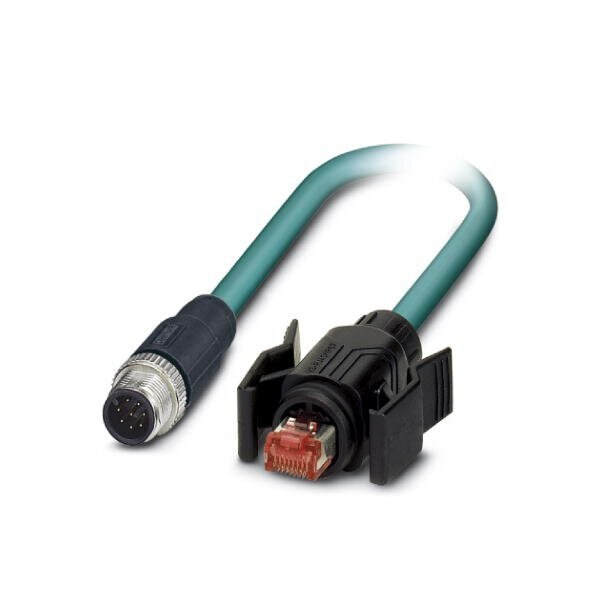 Network cable Ethernet CAT5 1 Gbps 8-position PUR water blue RAL 5021 Plug straight M12 / IP67 coding: A on Plug straight RJ45 Clip locking / IP67 cable length: 5 m