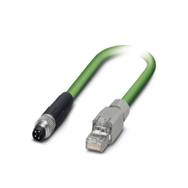 Network cable Ethernet 100 Mbps PROFINET 100 Mbps EtherCAT 100 Mbps 4-position PVC/PVC green RAL 6018 Plug straight M8 / IP67 coding: A on Plug straight RJ45 / IP20 cable length: 0.5 m