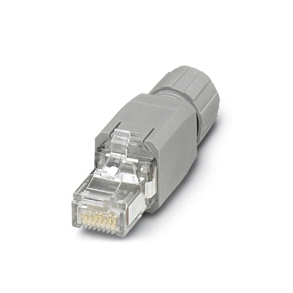 RJ45 connector degree of protection: IP20 number of positions: 4 100 Mbps CAT5 IEC 11801:2002 material: PA connection method: IDC fast connection cable outlet: straight color: traffic grey A RAL 7042 PROFINET